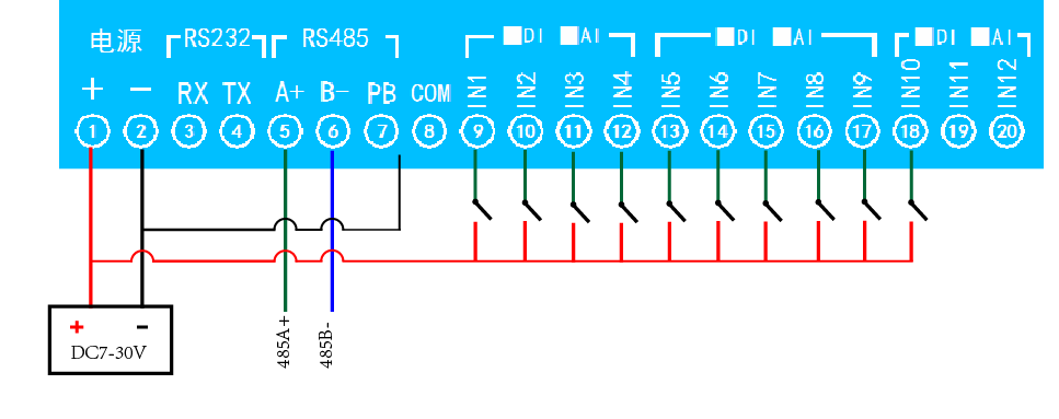 功能說明:16DO+16AI+16DI
