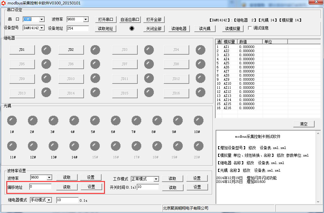 點擊軟件下方偏移地址后邊的“讀取”或“設置”來對設備的偏移地址進行讀取或設置。