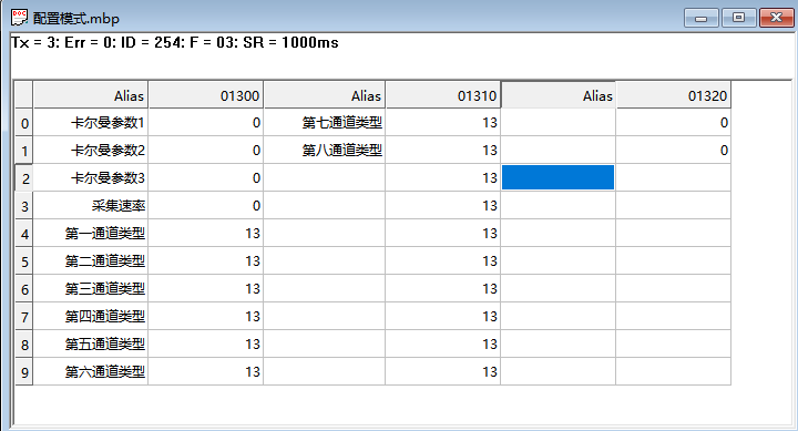 使用03指令寄存器地址從01300開始配置,可以每個通道為不同的信號類型,