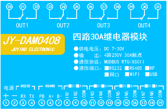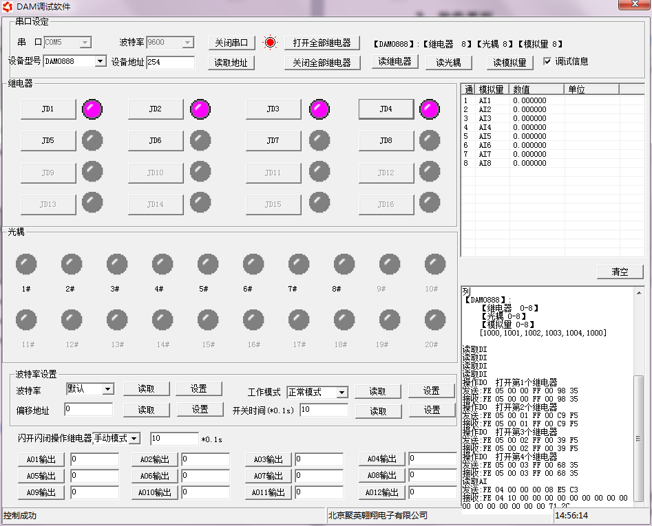 功能說明:8DO+8DI+8AI+8AO