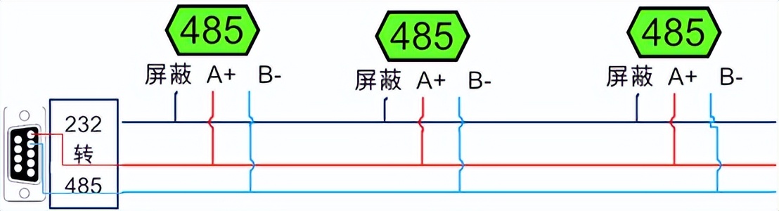 電腦自帶的串口一般是RS232,需要配232-485轉(zhuǎn)換器(工業(yè)環(huán)境建議使用有源帶隔離的轉(zhuǎn)換器),轉(zhuǎn)換后RS485為A、B兩線,A接板上A端子,B接板上B端子,485屏蔽可以接GND。若設(shè)備比較多建議采用雙絞屏蔽線,采用鏈型網(wǎng)絡(luò)結(jié)構(gòu)。