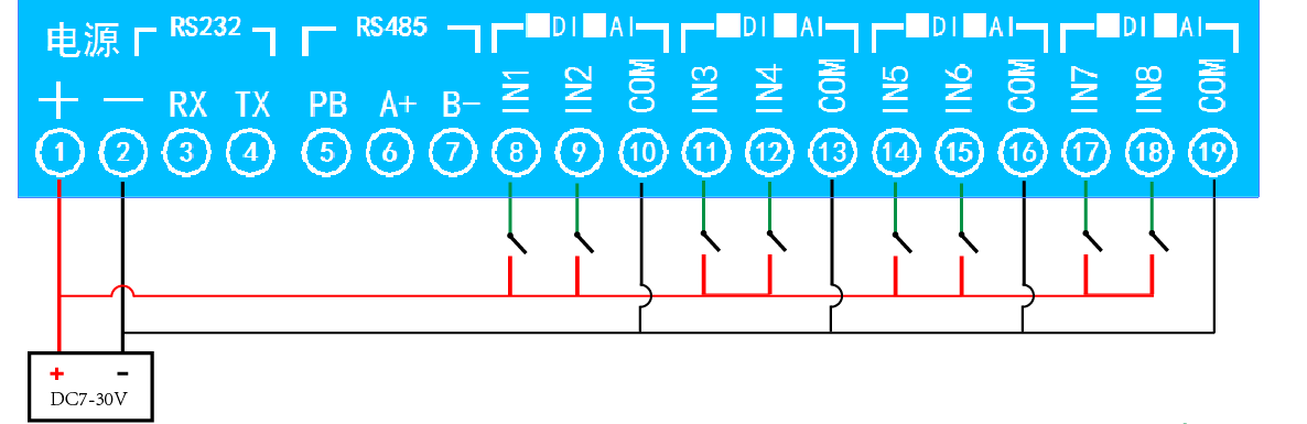 功能說明:8DO+16DI