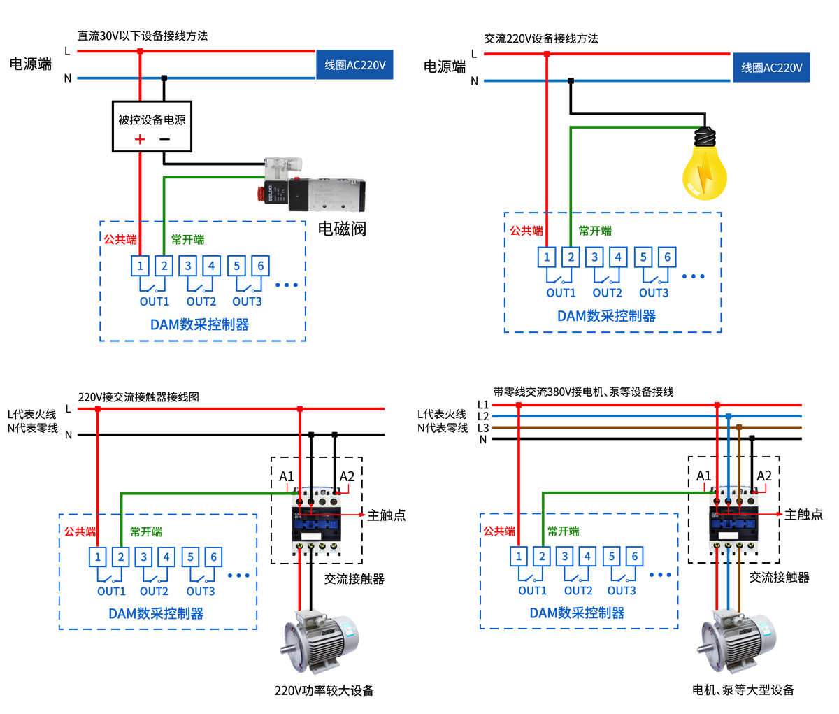 DO(繼電器輸出) | 44-47 | Out1-Out4 | 第1路--第4路繼電器常開端 |